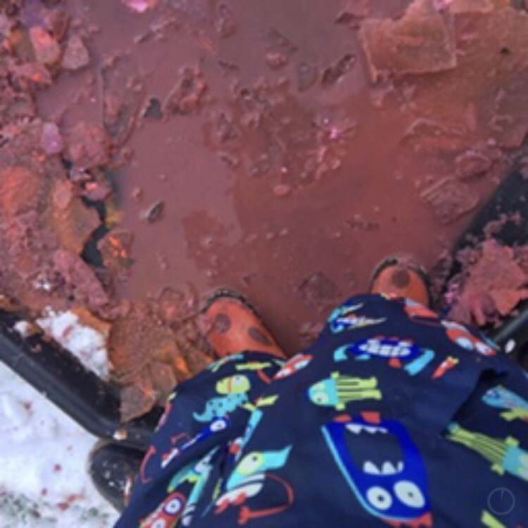 One of the highlights of the winter was creating our own ice paint and instead of a muddy puddle we created a rainbow slushy puddle.