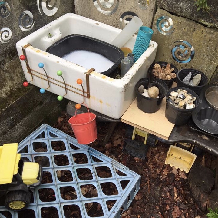 This is one area of my garden that is always changing and developing. Filled with loose parts it is a place where mud pies and potions are created at the hands of the little explorers.