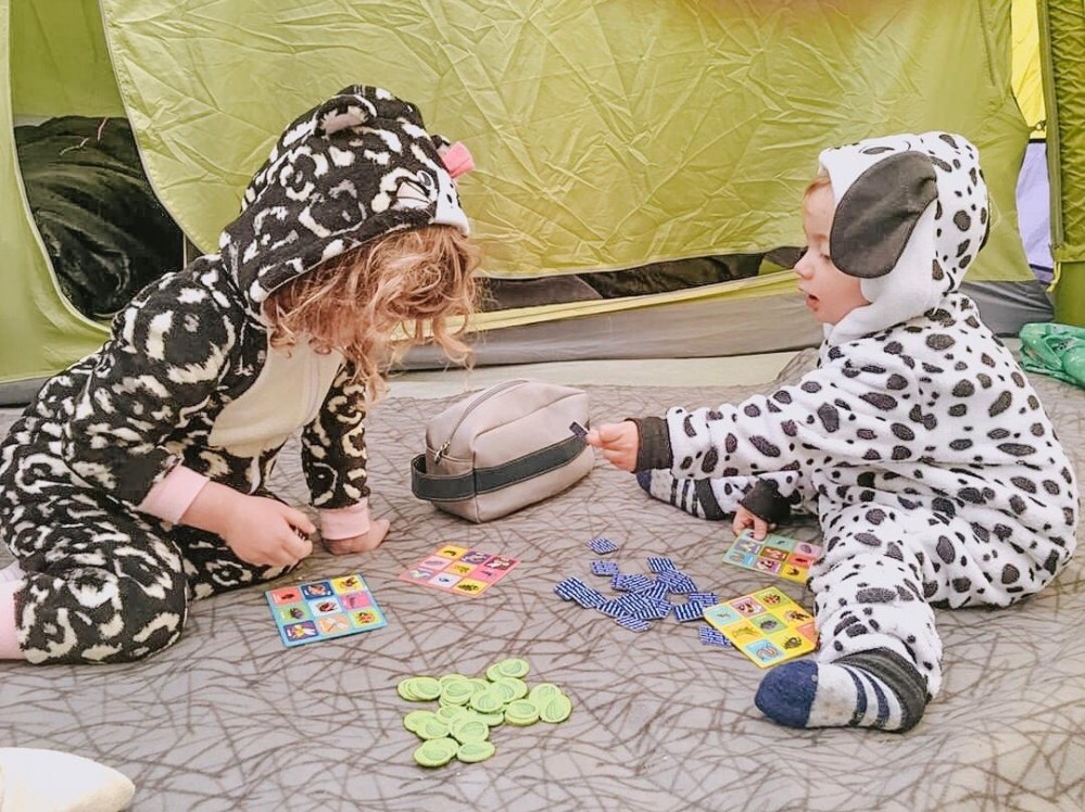 ‘We love holidays in this country as there are so many glorious places to visit and so many things to do. This year we have invested in a tent and the children, and us, are loving it! For times hanging out together in the tent we take games (including educational games so win win!) that we can all play, including board games-bug bingo is a favourite, jigsaws for the 2 year old and the 4 year old absolutely loves colouring-every picture is rainbow coloured! We also love playing simple games like eye-spy, who am I and treasure hunts like who can find the biggest leaf.’